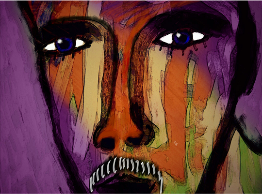 Aquí trato de capturar ese segundo que parece eterno cuando algo importante sucede. La figura humana aparece suspendida, rodeada de formas abstractas y tonos metálicos. Hay tensión entre lo que se sostiene y lo que se derrumba. Trabajo con capas gruesas y desgastes visuales. Es una obra que confronta la fugacidad con la permanencia